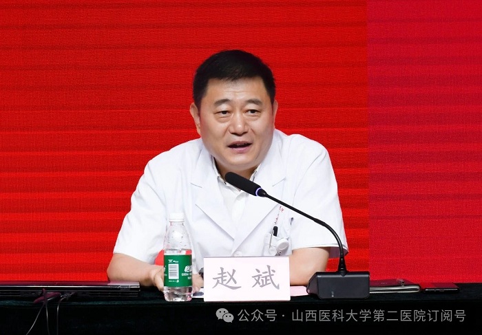 成曉龍書記代表院黨委,向獲獎醫師致以熱烈祝賀,并向全院醫師和醫務工作者致以誠摯的節日問候。他深情回顧了二院人薪火相傳、不懈奮斗的輝煌歷程,并強調,正是一代又一代二院人團結拼搏、接續奮斗,不斷拓展醫療服務的廣度與深度,推動醫院高質量發展邁出堅實步伐,生動詮釋了“大醫精誠”的深刻內涵,為守護人民生命健康筑起了堅不可摧的防線。他進一步勉勵全院醫師及醫務工作者,要深入學習貫徹黨的二十屆三中全會精神,強化政治引領,提升思想認識,將黨的光輝旗幟高高飄揚在守護人民健康的最前沿;要持續錘煉專業本領,追求卓越醫術,強化醫德醫風建設,為患者提供更加精準、高效、溫暖的醫療服務;要牢記為民初心,勇于擔當責任,積極投身醫院發展建設,用實際行動踐行“人民至上、生命至上”的崇高理念,為健康中國、健康山西的建設貢獻新的更大力量。